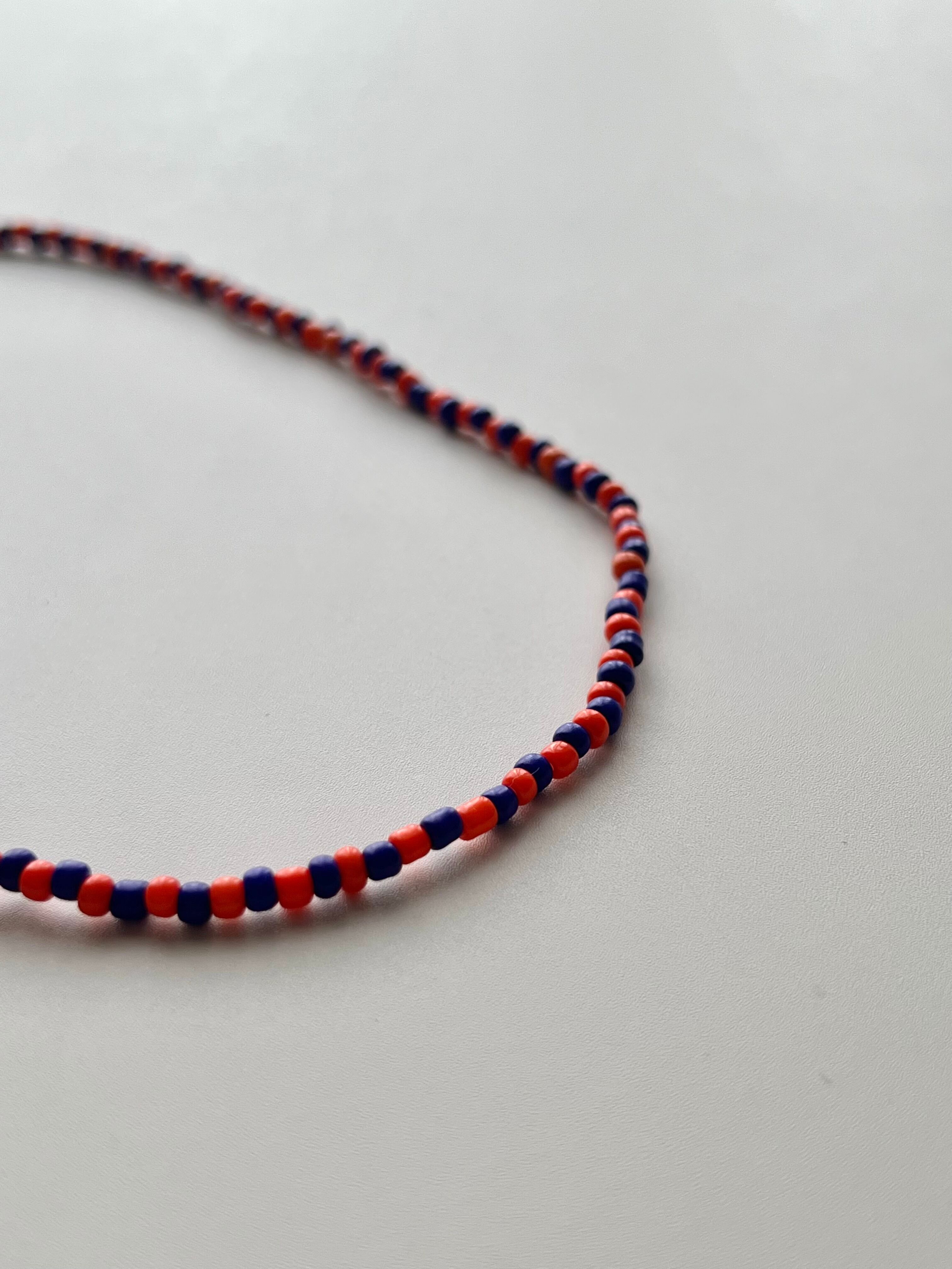 ネックレス ビーズネックレス オレンジ ネイビー